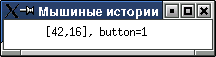 2. Напишите программу, определяющую координаты мыши в момент нажатия кнопки и печатающую в позицию мышиного курсора координаты мыши и номер нажатой кнопки.