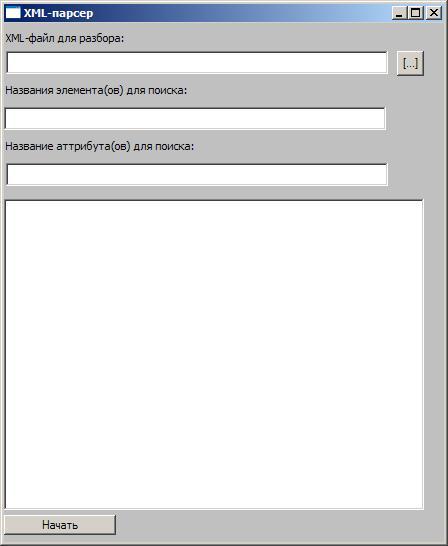 Во втором TEdit-поле вводится название XML-элемента, который ищется в XML-файле, Третье TEdit-поле хранит название аттрибута, который нужно найти. Эти компоненты названы element2find и attribut2find.