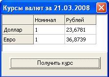 В процедуру OnClick кнопки заносится процедура получения курса валют.