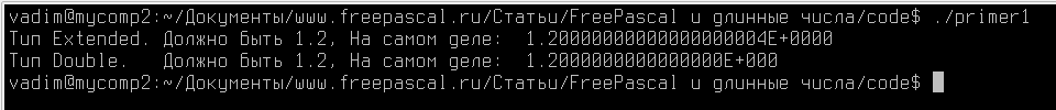 WriteLn('Тип Extended. Должно быть: 1.2; На самом деле: ', e);