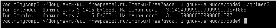 WriteLn('Тип Extended. Должно быть 3.1415 E+1888, На самом деле: ', e);