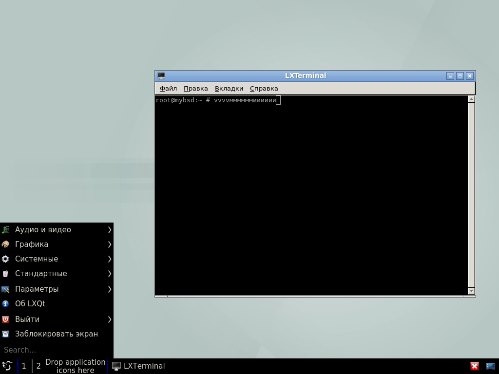 FreeBSD более ласковая к пользователю система, чем OpenBSD. Она по количеству программ пожалуй не уступает Debian. Правда не все программы хранятся в виде бинарных пакетов, но все общераспространённые программы в бинарниках есть, в том числе и некоторое количество рабочих столов. Поскольку во FreeBSD мы решили использовать библиотеку Qt, то и рабочий стол нужно устанавливать именно на этой библиотеке. KDE (а уж Plasma и подавно) однозначно не подойдёт, т.к. на 1 ГБ памяти мого тестового компьютера можно будет ногти до локтей изгрызть, пока дождёшься результатов от такого в высшей степени продвинутого рабочего стола. К счастью, на базе Qt есть и лёгкие рабочие столы, например LXQT. Вот его мы на FreeBSD и поставим.