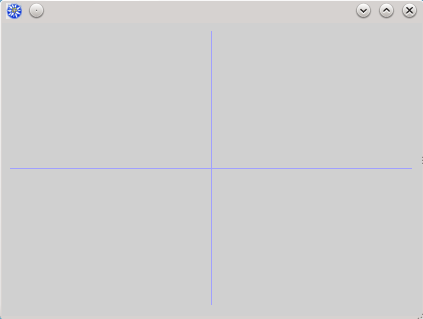 Функция makepoint определена в модуле msegraphutils. Процедура drawline рисует линию из одной точки в другую указанным цветом. В нашем примере это две светлоголубые линии – горизонтальная из (0,trunc(sender.bounds_cy/2)) в (sender.bounds_cx,trunc(sender.bounds_cy/2)) и вертикальная из (trunc(sender.bounds_cx/2),0) в (trunc(sender.bounds_cx/2),sender.bounds_cy). Теперь запустите программу, результат примерно такой: