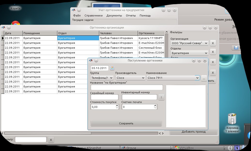 4. Отчет об оргтехнике по помещениям/людям/отделам