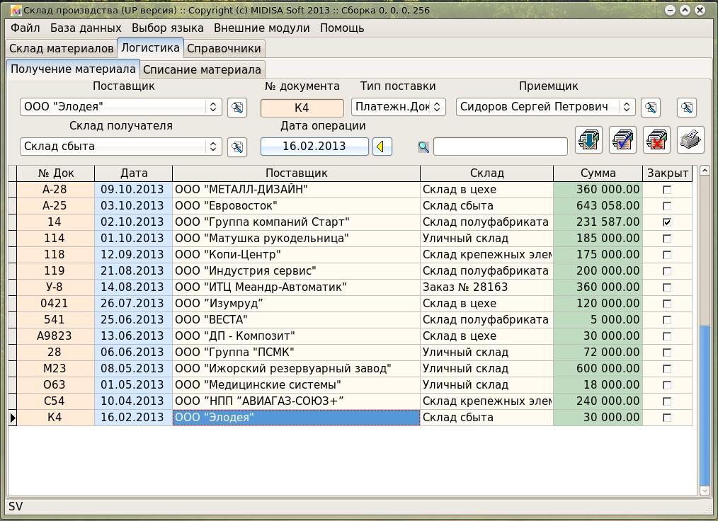 Работа со складом: Приход на склад, Расход со склада Состояние склада, минимальные остатки на складе. Сделано на 95% есть много мелких недоработок, которые прямо сейчас устраняю.