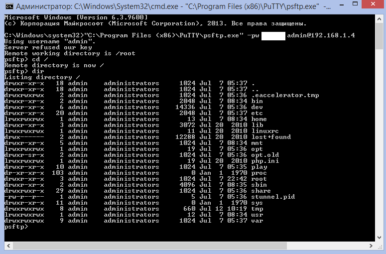 psftp.exe утилита для Secure FTP из комплекта Putty