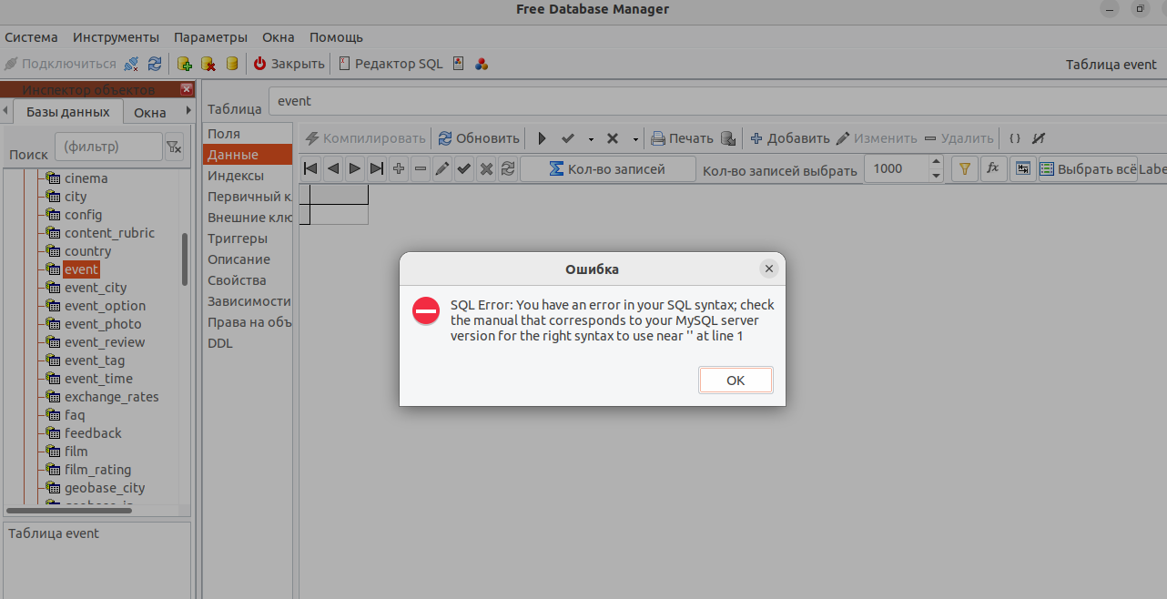 Не подтягиваются поля в таблицах (MySQL 8 ), данные тоже посмотреть нельзя.