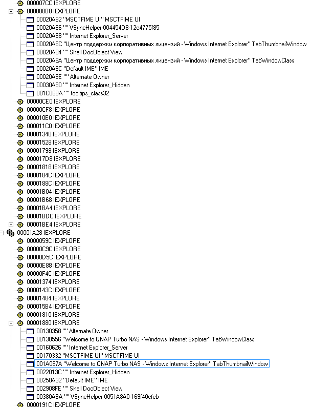 Смотрим на список окон и на его z-дерево, понимаем, что у окна IE нет родителя.